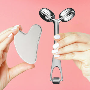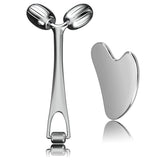 All-Metal Skincare Tools for Daily Use – This guasha tool for face and stainless steel face roller are made entirely of metal, offering a cooling, refreshing feel that elevates your skincare routine. Ideal for those who love high-quality face massager tools.