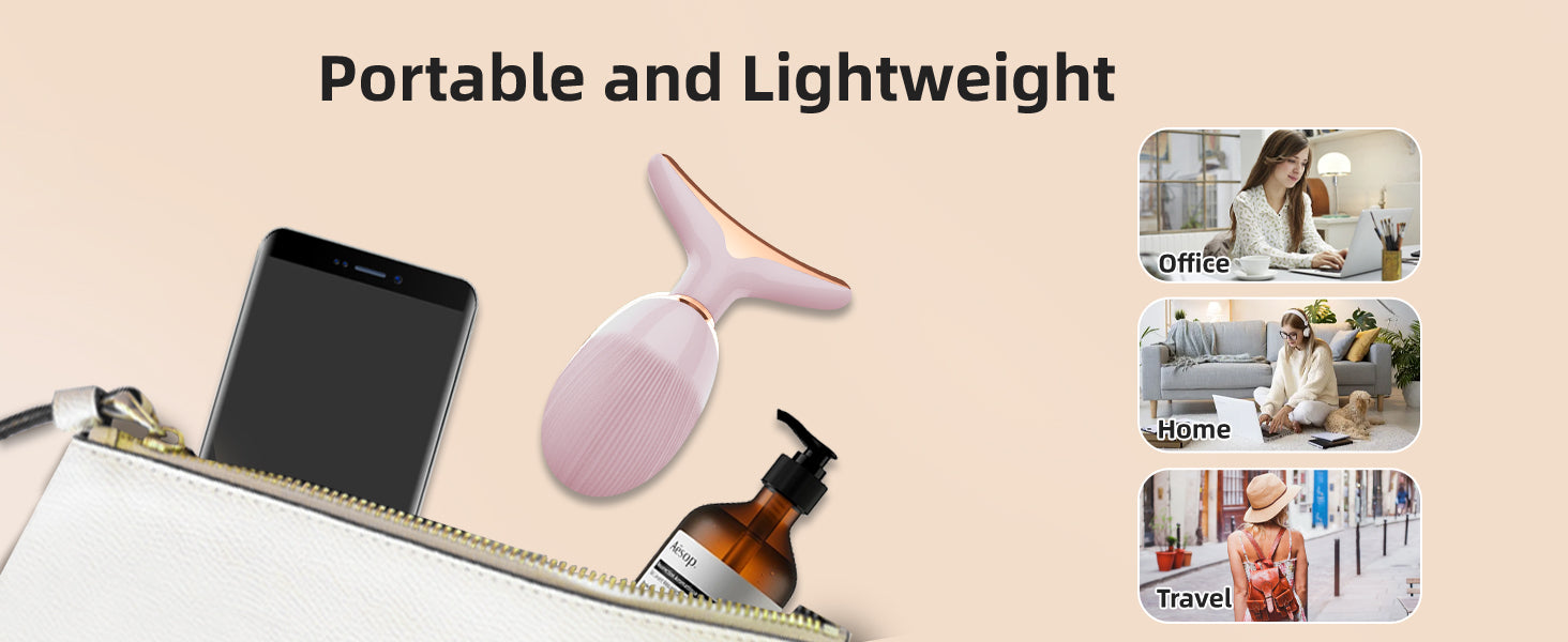 - Engineered for convenience, our face and neck massager light therapy is compact and stylish. Whether you're traveling or on a daily commute, it's the perfect beauty companion