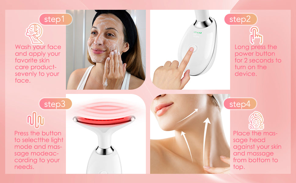 Our Facial Massager offers 3 modes and heating of operation, including vibration and heating, providing a versatile and customizable experience. Its ergonomic design ensures a comfortable grip for effortless use