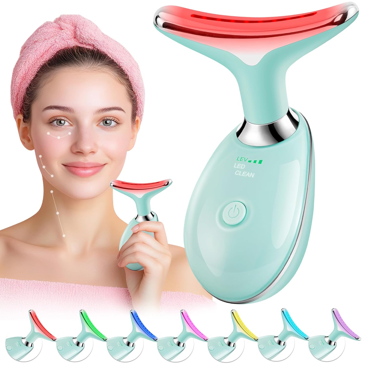 Perfect skin care device, lymphatic drainage massager, true beauty glow and maintains a healthy and radiant complexion, double chin reducer, luminesce 7-in-1 led facial sculptor. The uniquely curved Arc massage head effortlessly glides along your face, helping to improve absorption of creams and lotions