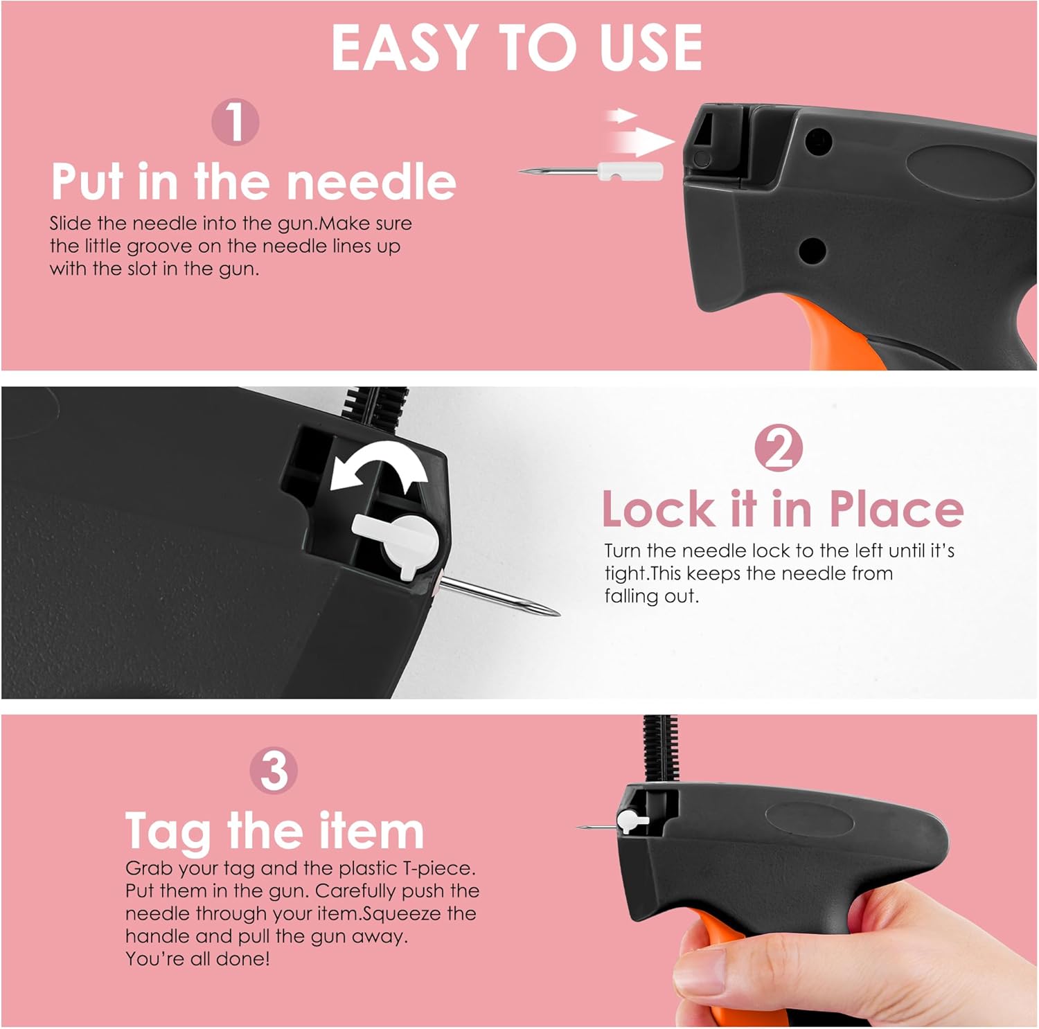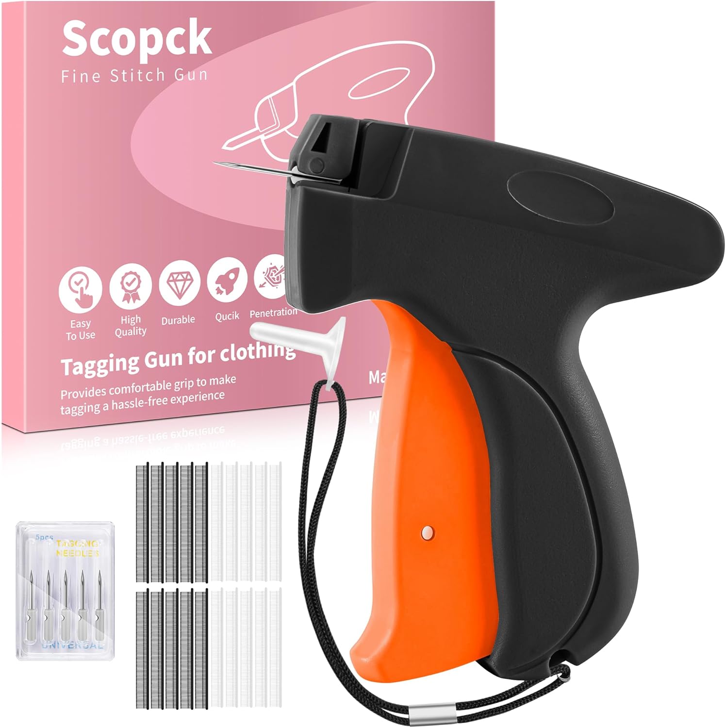 Stitch Gun for Clothes - Handheld Stitch Gun Quick Clothing Fixer - Tagging Gun - Includes 6 Needle, 1000 Black Fasteners & 1000 White Fasteners (Black/Orange)