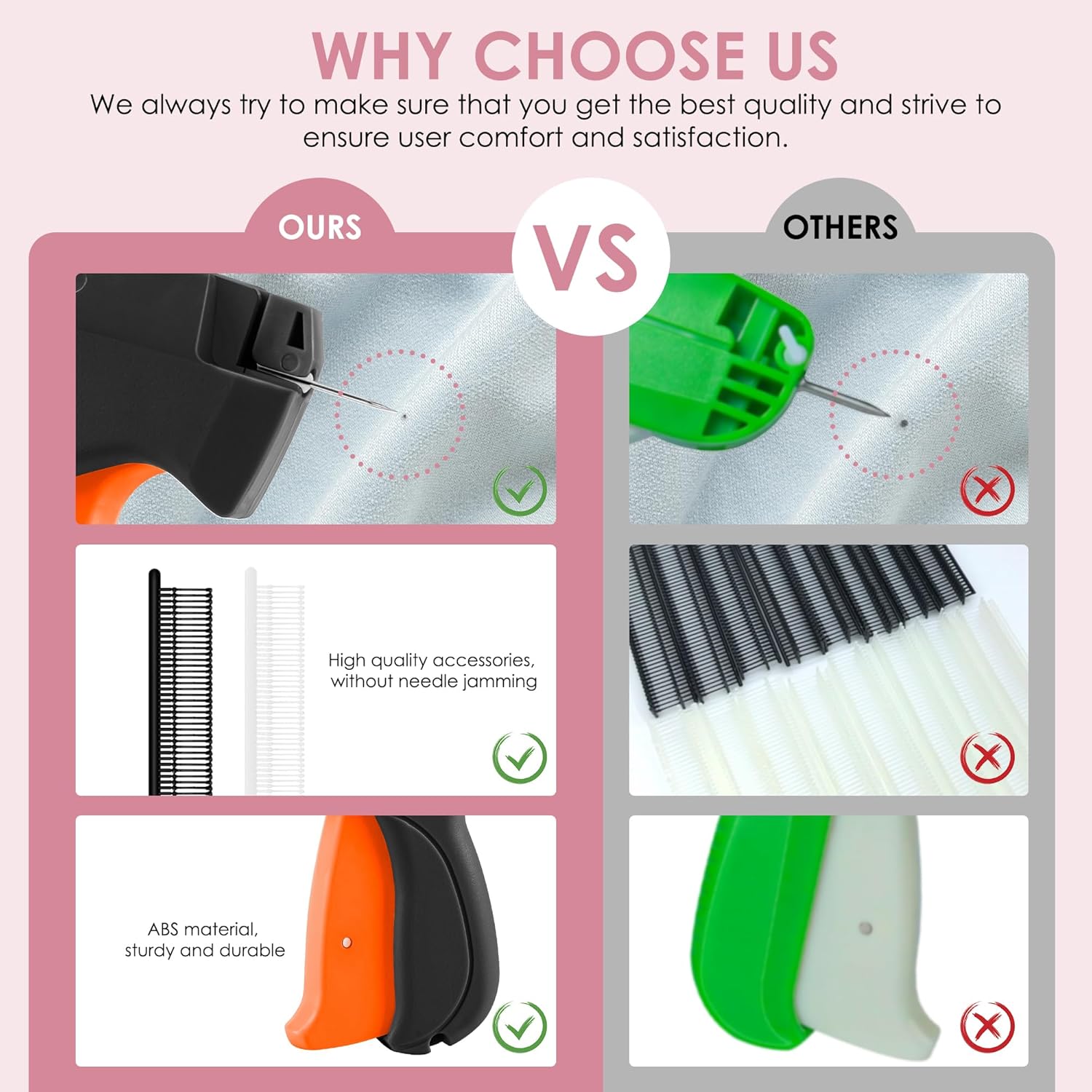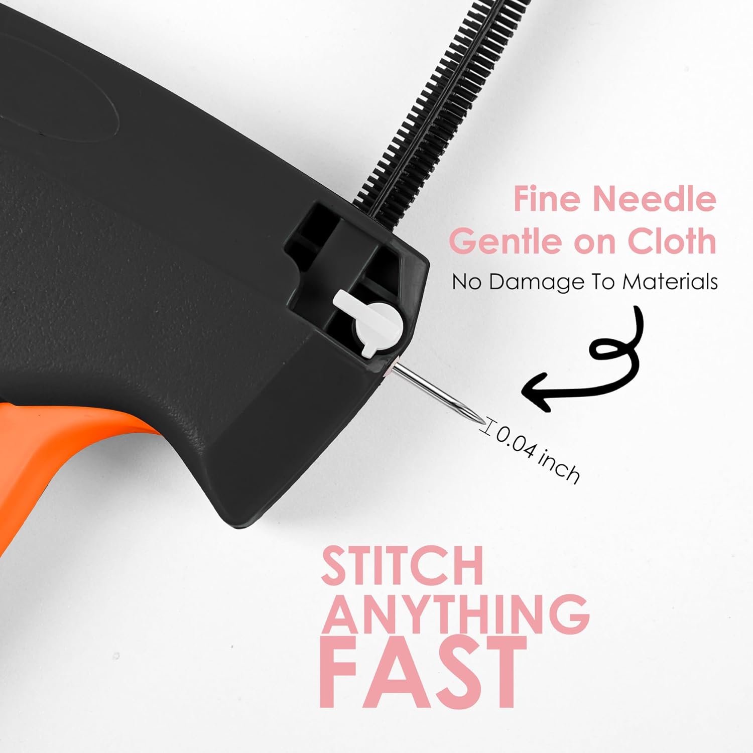 Premium Material: Made of hard plastic, this stitch gun is small, lightweight, and sturdy. The stainless steel needle is smooth and pointed, easily passing through fabrics. The ergonomic design ensures comfort during long periods of use